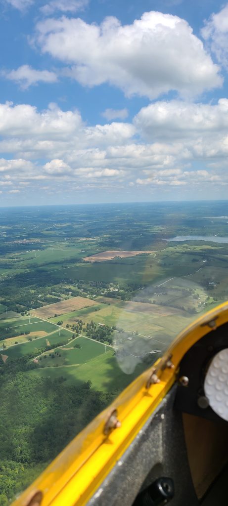 There are two flights I would like to write about, the first on the 7th of August. I flew from Caesar Creek Soaring Club to Warren County Airport, a round trip of about 17 nautical miles. The other flight was on the 8th of August. That day I flew for 2 hours and 40 minutes, I stayed local because the weather would not permit extended cross country flights in the 2-33, but I got to work on my thermalling skills.